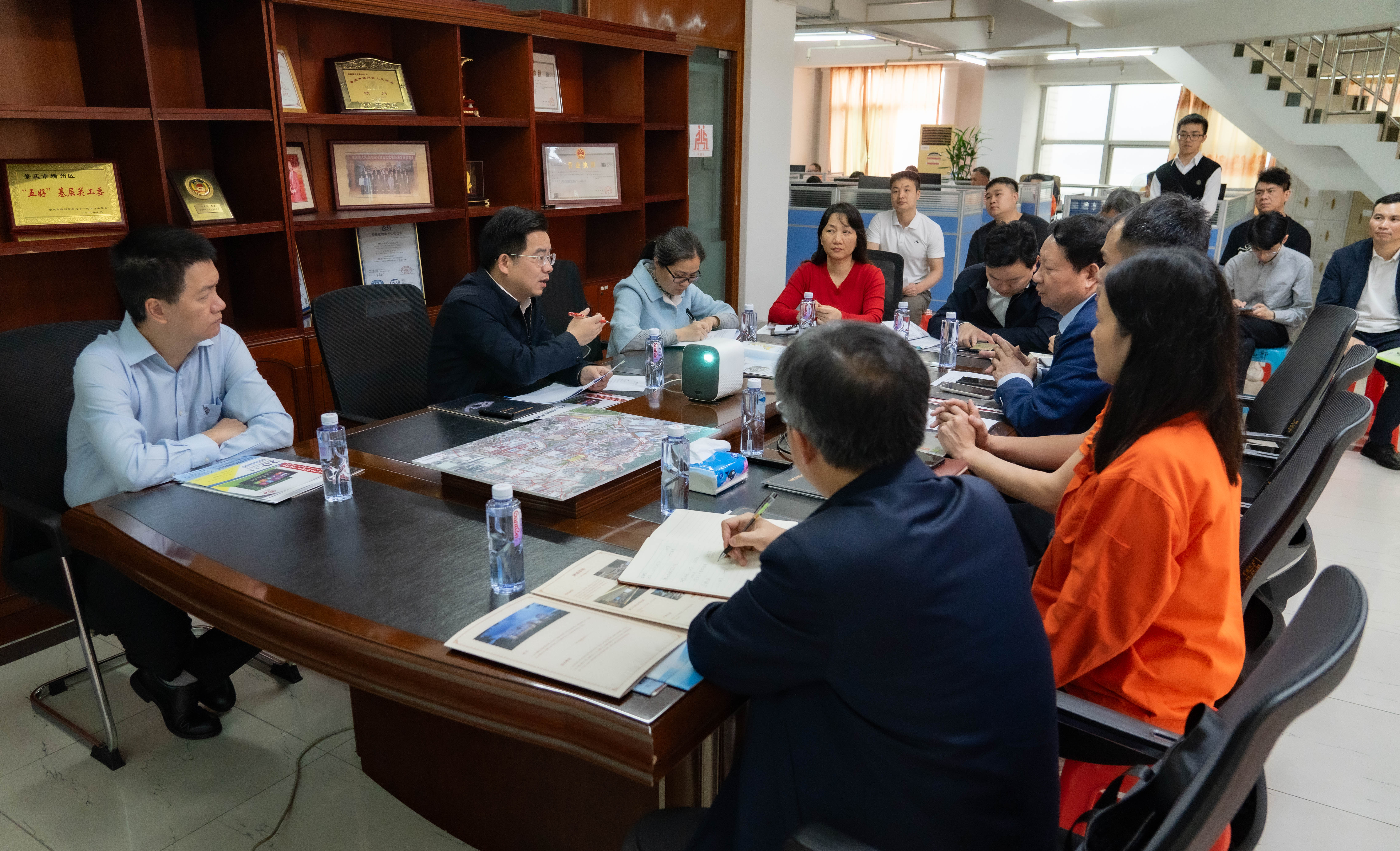 期間,區領導與我司董事長沈中澤及我司企業管理團隊進行了交流,了解我司生產經營狀況,幫助解決了我司在推進項目建設、金融和稅務服務上遇到的問題,大大增強了企業發展的信心。