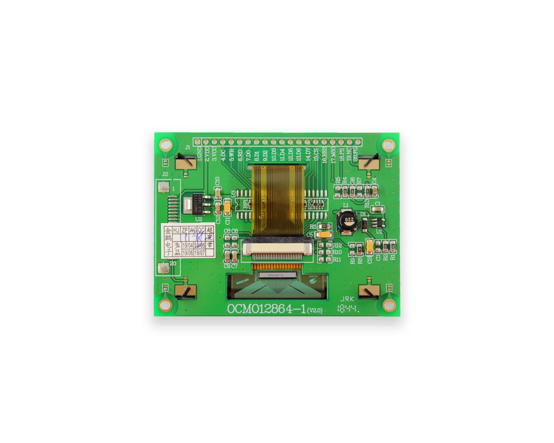 - 顯示點陣:128X64- 模塊尺寸(mm):74×56.5×5.8